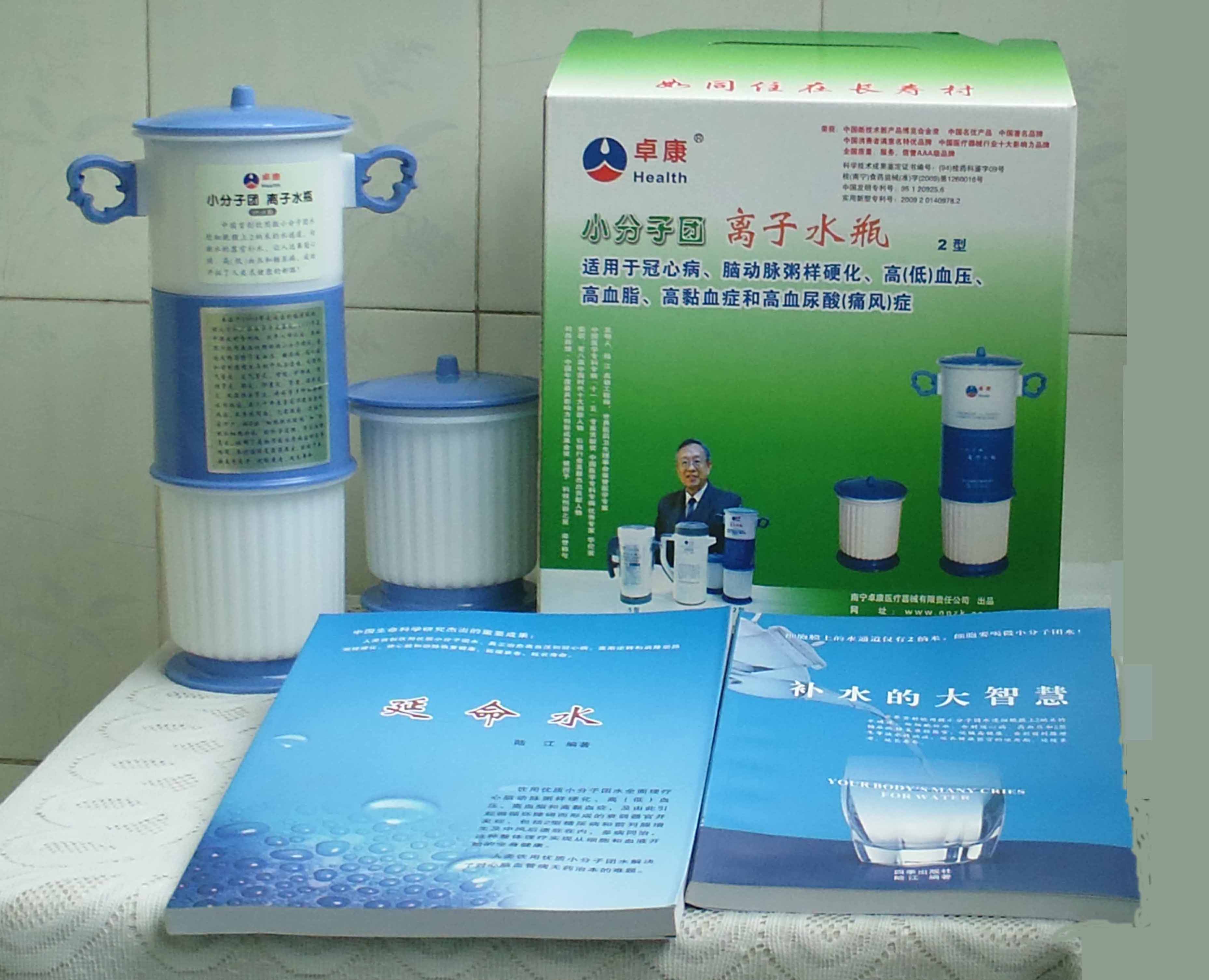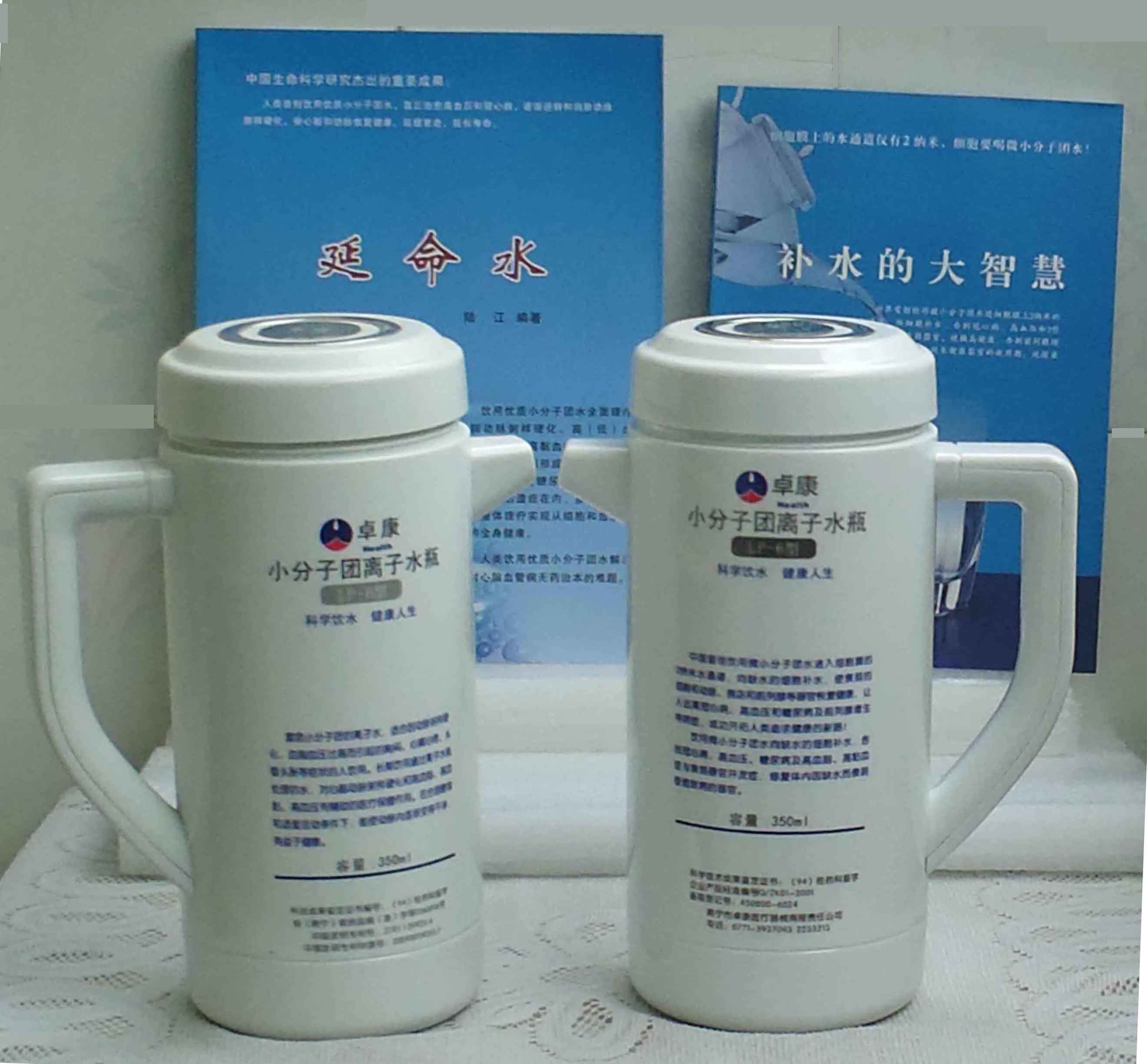 本品大量用戶的使用效果表明,能治愈冠心病、腦動脈硬化、原發(fā)性高(低)血壓、高血脂、高粘血癥、高血尿酸癥(痛風)和2型糖尿病、衰弱器官并發(fā)癥(前列腺增生、腎衰與尿毒癥)及中風后遺癥等療效好。產品配信譽卡。使用壽命30年,不換芯,易清洗。團購優(yōu)惠。從郵局匯款,匯費1%,地址按本頁下方地址、聯系人寫。從銀行匯款,請點擊[聯系匯款]欄,從工商銀行匯款,建設銀行、農業(yè)銀行匯款,均免收匯費,匯款后20--30分鐘內發(fā)短信,可用微信轉帳,均免匯費,微信號即手機號13768308380。匯款后,告知你的姓名和地址,我公司聯系人手機號是:13768308380。卓康牌離子水瓶為我公司獨家生產,郵購產品配《補水的大智慧》彩印書一本,另配四季出版社出版的新書《補水的大智慧》一本,并配光盤一張(含央視主持人釆訪陸江的對話視頻)。目前市場和"淘寶網"上有人兜售假冒的偽品,望讀者審察辯別真?zhèn)?,造假者剽竊假冒本公司的各種認證、獲獎獎項、專利號和外包裝盒上的中英文字,包括科技成果的鑒定意見等,請讀者注意防偽。如何識別假貨?已經買了假貨怎么辦?(請點擊[打假掠影][打假掠影])。