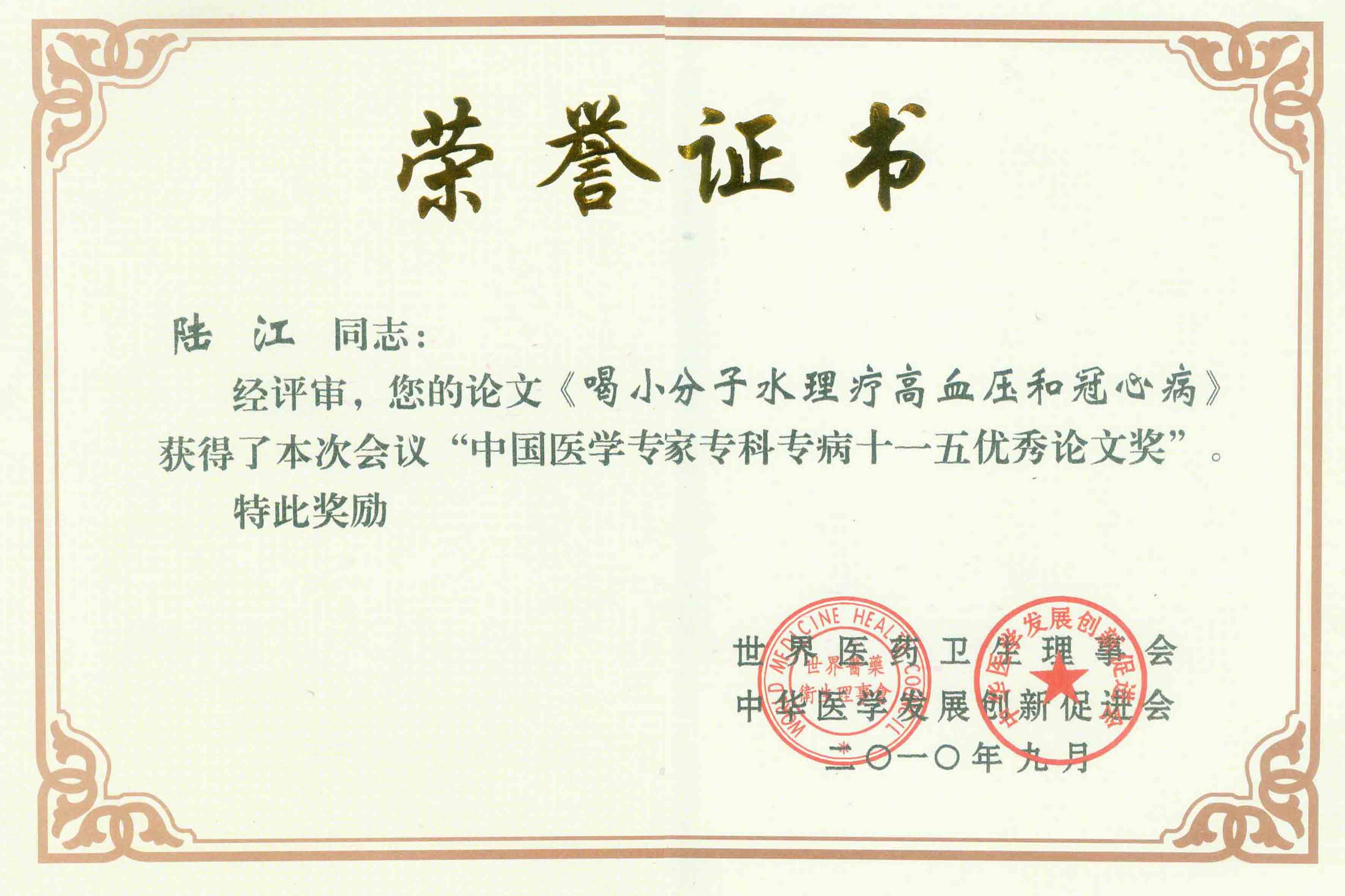 新疆63歲的賀兆生飲用一年,冠心病未愈,他用電話介紹是食堂管理員,問他食量多少?說吃七八分飽,睡前還吃兩袋牛奶,陸 江說我在論文和書中多次批判“吃七八分飽”,關照患者務必用“己饑方食”控制主食肉食量,要他把牛奶改在早中餐吃,減少主食肉食量,建議不吃晩餐,晚上只吃一個蘋果,再經幾個月補水節(jié)食,治愈了21年的冠心病和肥胖、失眠等病,信中由衷地感激陸 江為再生父母。[13]因為醫(yī)生從未過問他的膳食習慣,只管開處方藥或手術,父母也不會叫他不吃晩飯。